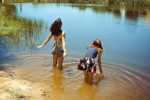 I hear lake water lapping with low sounds by the shore;